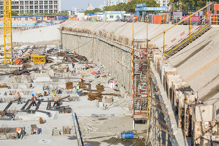 工程简介:该项目位于启东市公园南路西侧、牡丹江西路南侧,由江苏南通二建集团有限公司、启东市忠诚信开发建设有限公司、江苏启东农村商业银行股份有限公司联合开发。基坑呈长方形,南北向长290m,东西向宽145m,基坑周长约860m,基坑面积近4万㎡。